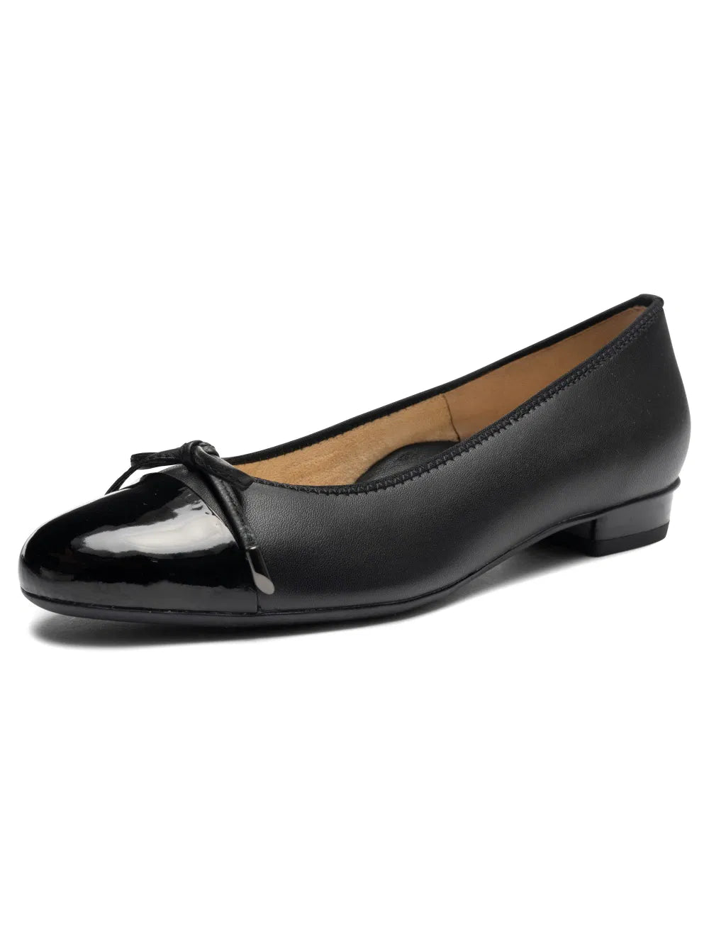 BELINDA BLACK LEATHER W/PATENT TOE BY ARA